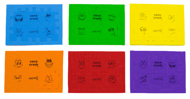 El objetivo principal de Cococrash es formar un cubo con las 6 piezas del mismo color o mezclado. Piezas tipo puzzle decoradas con unas divertidas caras individuales que se desprenden de cada lámina, cada una de las cuales tiene una forma y un tamaño específicos no siendo obligatorio que queden visibles los dibujos de cada pieza.